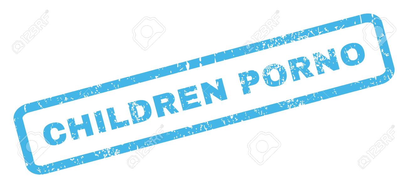 子供ポルノ テキスト ゴムスリーブは スタンプの透かし グランジ デザインと汚れた質感を長方形図形内のキャプションします 白い背景に傾斜ベクトル青インク エンブレム のイラスト素材 ベクタ Image